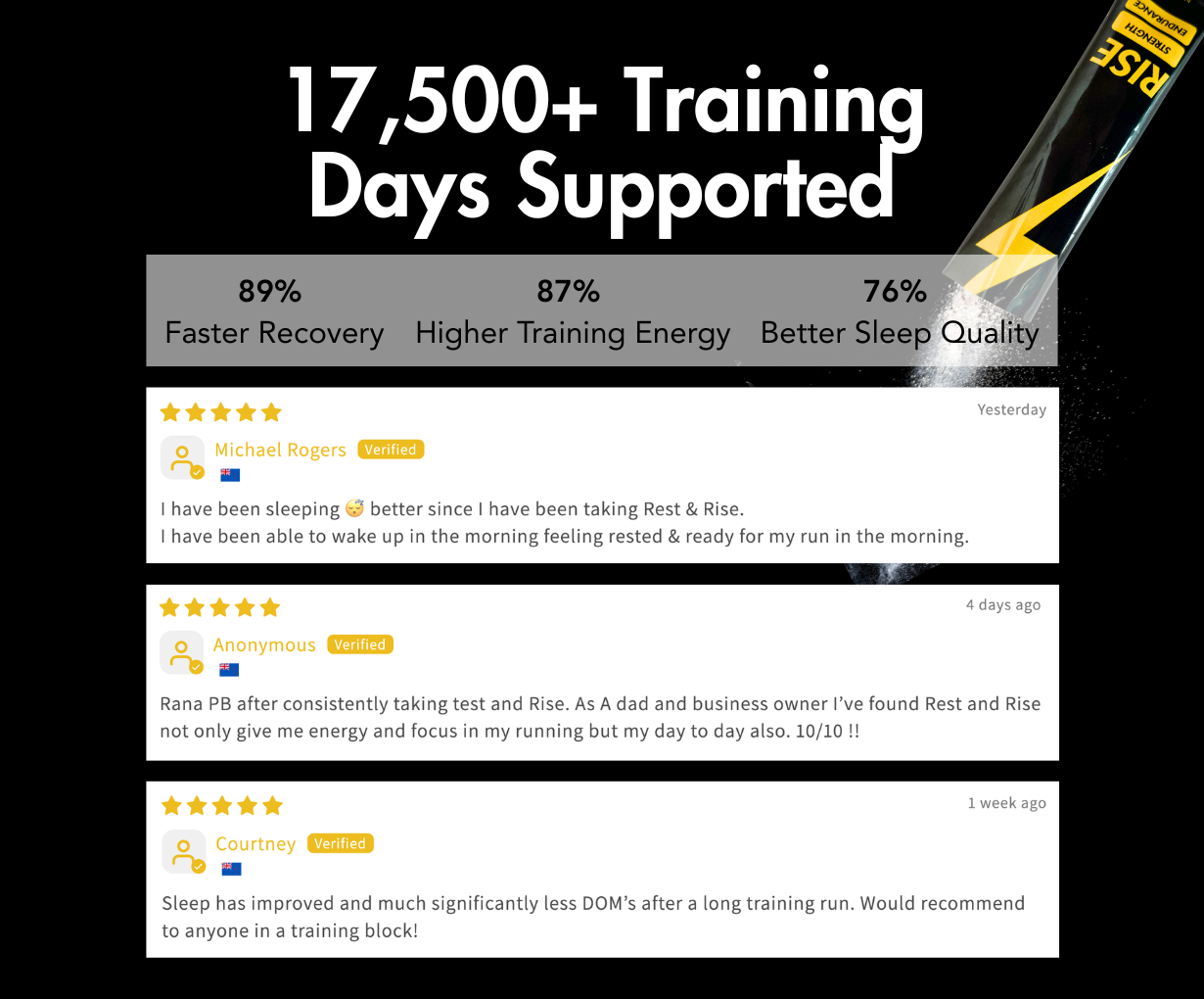 Recovery demands fluctuate with training load, stress, and life — many athletes use Rest & Rise during heavier training blocks or when prioritising consistency.